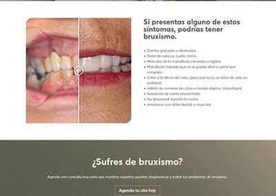 Desarrollamos un sitio web que destaca los servicios especializados de la Clínica del Bruxismo, enfocándonos en su diferenciación y en proporcionar información clara y accesible sobre el tratamiento del bruxismo.